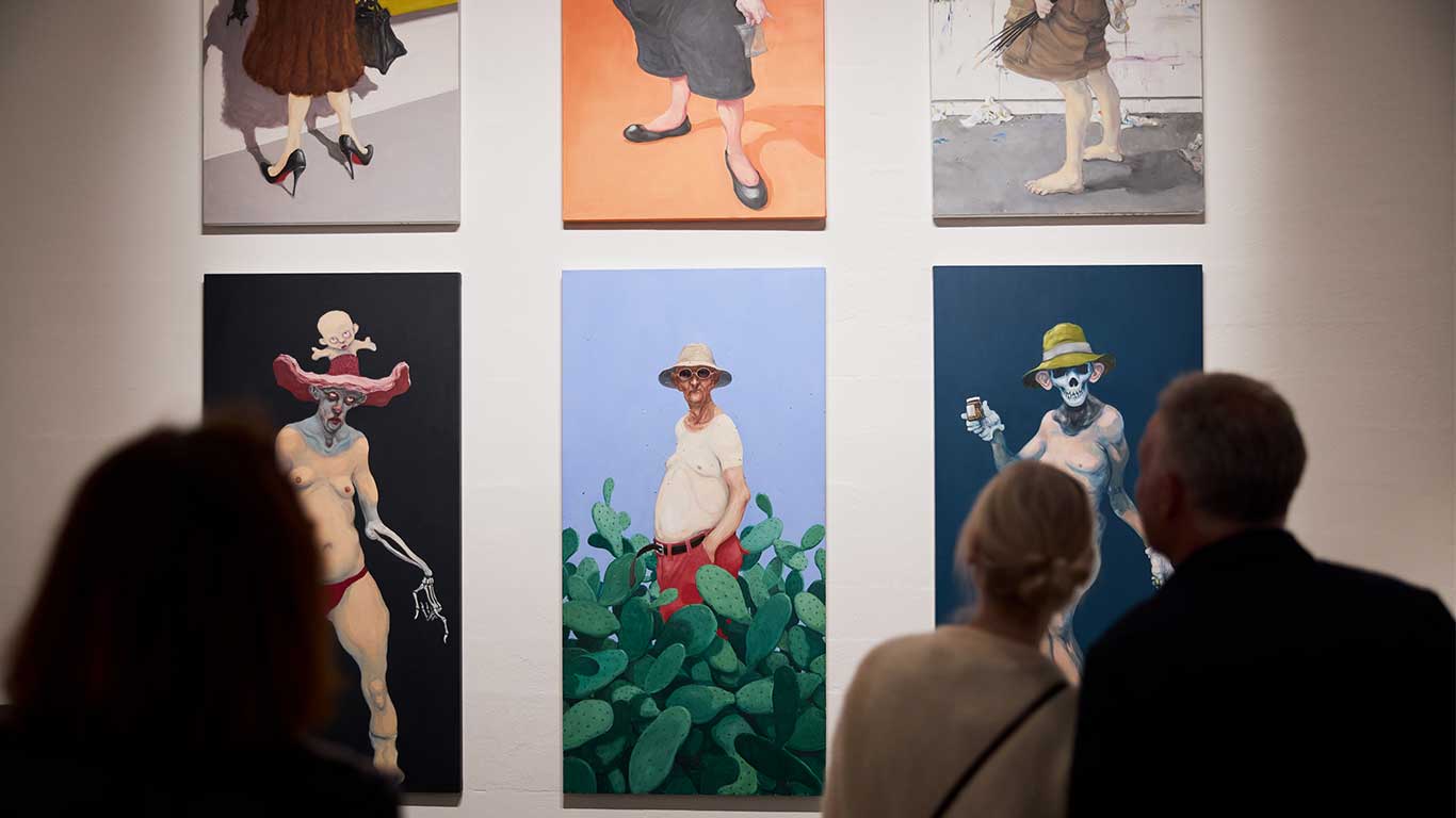 Med udstillingen Skyggeteater inviteres publikum ind i et særegent og foruroligende univers befolket af 36 figurative performere, der er skabt af Michael Kvium. Malet over 17 år – fra 2008 til 2025 – udgør værkerne et samlet tableau over menneskets skyggesider og samtidens absurditeter. I et billedrum, der fungerer som en visuel teaterscene, udfolder Kviums værker en kritisk, sanselig og dybt reflekterende samtidsdiagnose.