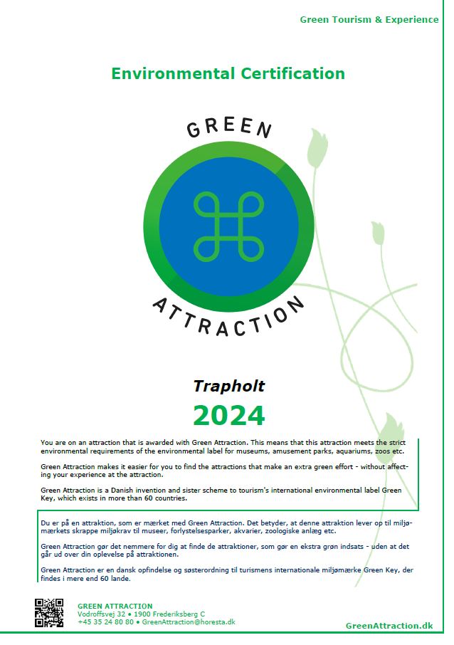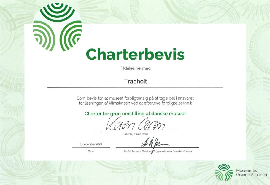 i 2024 har Trapholt fået Green Attraction-certificeringen, der gives til museer og attraktioner, som gør en ekstra indsats for bæredygtighed.